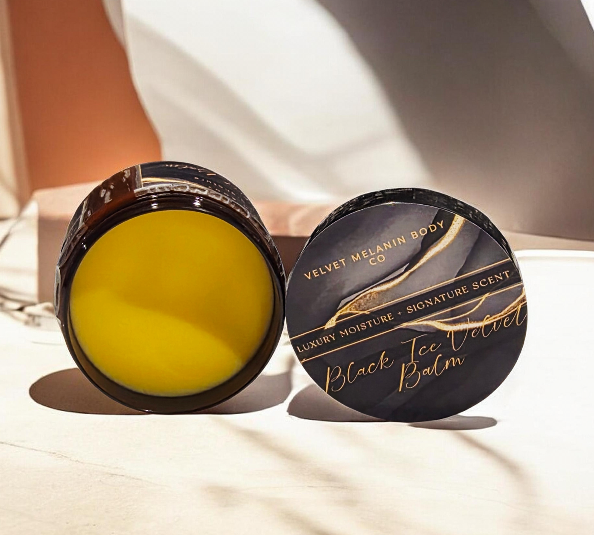 Melt into luxury hydration. Our body balm deeply nourishes, softens, and leaves skin glowing with a rich signature scent that lingers all day. Designed for melanin-rich skin that deserves moisture and attention.
